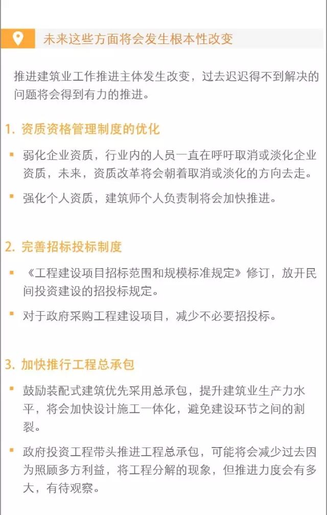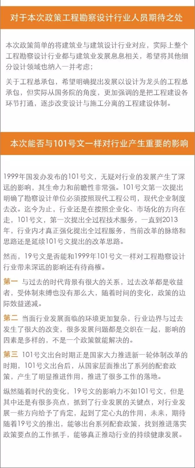 2017年2月24日,国务院办公厅重磅推出《国务院办公厅关于促进建筑业持续健康发展的意见》,社会反响强烈,尤其对于工程勘察设计行业而言,业内一片欢呼,这也是自1999年国务院办公厅转发建设部等部门《关于工程勘察设计单位体制改革若干意见的通知》(国办发〔1999〕101号)之后与设计行业发展相关的又一重磅政策。我们认为《意见》的推出着实利好建筑业,阻碍建筑业健康发展的多方面问题终于有了解决的助推剂。本文就《意见》的政策内容、争议、影响等方面深度分析: