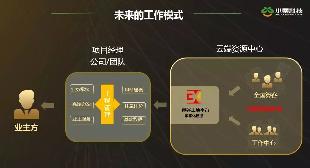 之所以1名金牌算客,就可以撑起一个工作中心,承接十几万、甚至二十几万平米的项目,得益于算客工场平台的“项目分拆合作”的模式,工作中心或企业无需耗费大量时间和费用招聘、雇佣、培养员工,只需要根据工程需要,在平台找到合适的优秀算客共同承接项目,即可低成本、高效率的完成大项目。