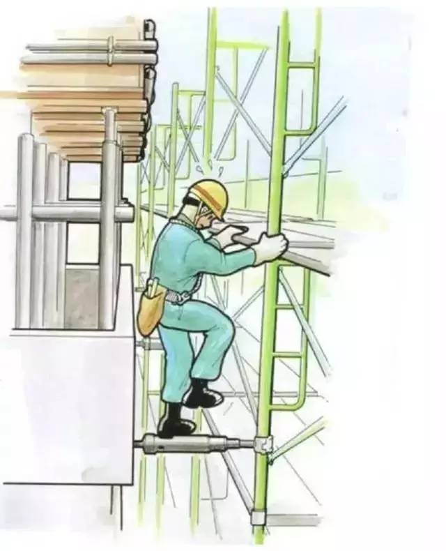 ③ 严禁翻爬脚手架、井字架、龙门架或乘坐非载人设备。