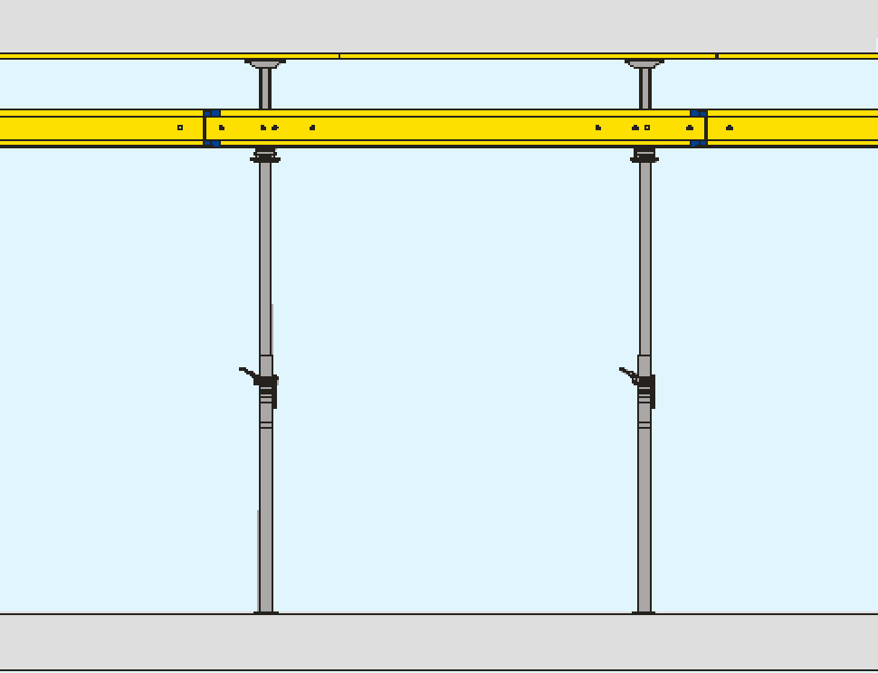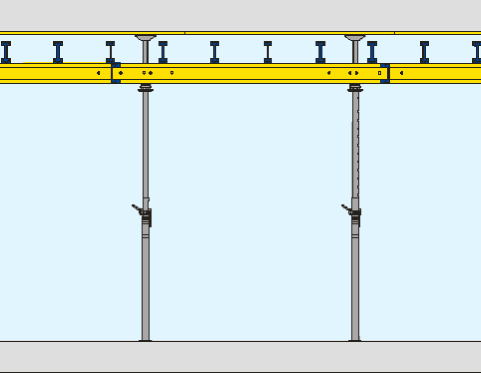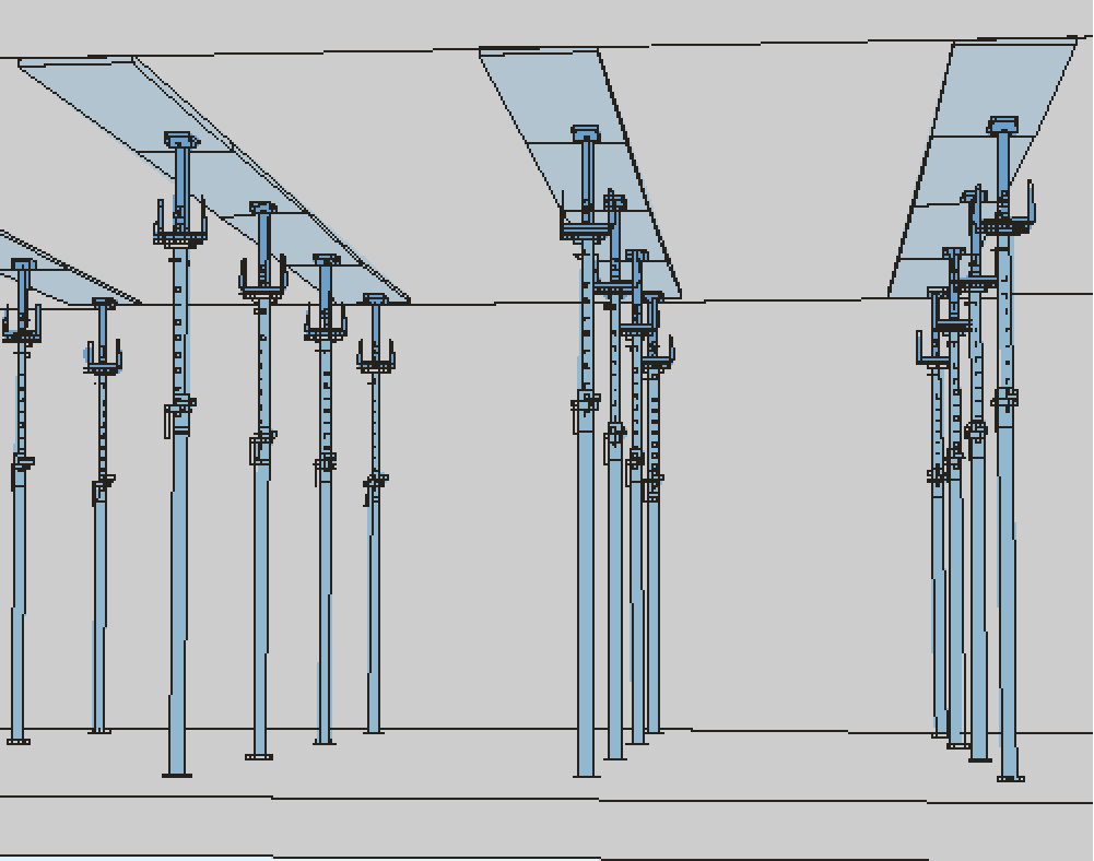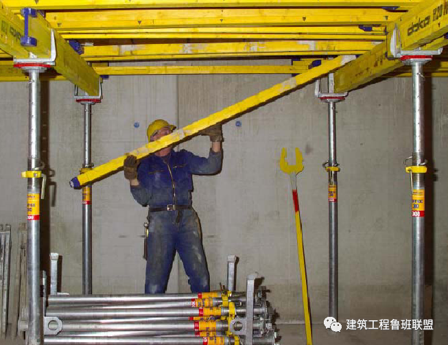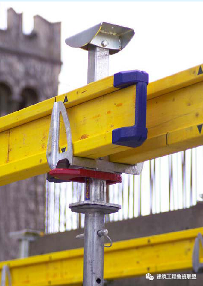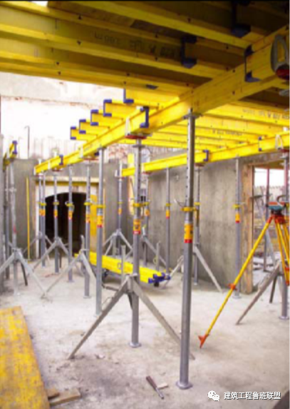 ① 狭窄模板同混凝土接触,可调支撑头,独立式钢支撑