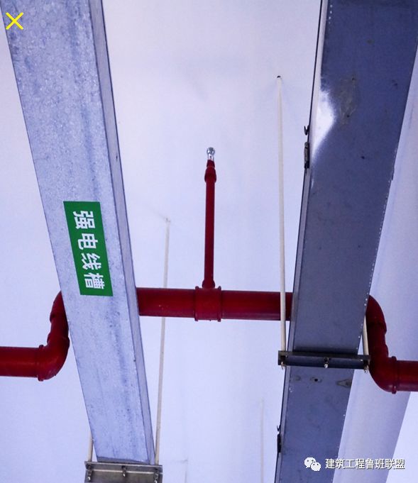 正确安装:电气桥架与喷淋头保持一定的安全距离。