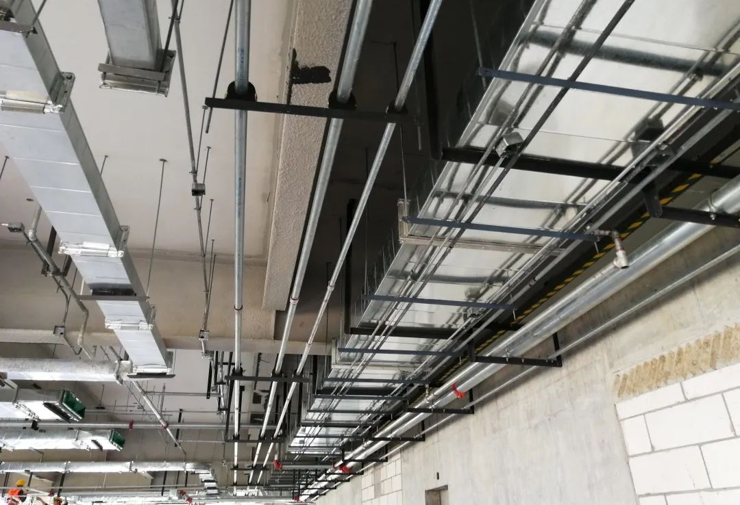 为此,要保证国家生产生活与信息领域的绝对安全,三峡大厦机电系统,以只在少数影响国家安全领域运用、国内最高A级数据处理中心为标准,按照5年国内领先,10年不落后要求来建设。该机电系统除了常规系统,还有专为生产调度服务的工艺强弱电系统、精密空调系统、恒温恒湿系统、UPS备用电池电源系统,双路由双物理隔离等顶级特殊系统。如此多的主、子系统在保证绝对安全的情况下只能排布在不足45厘米高的空间,管线纵向排布最多高达8层,每层管线排布误差间距只有1厘米,其难度在业内罕见。
