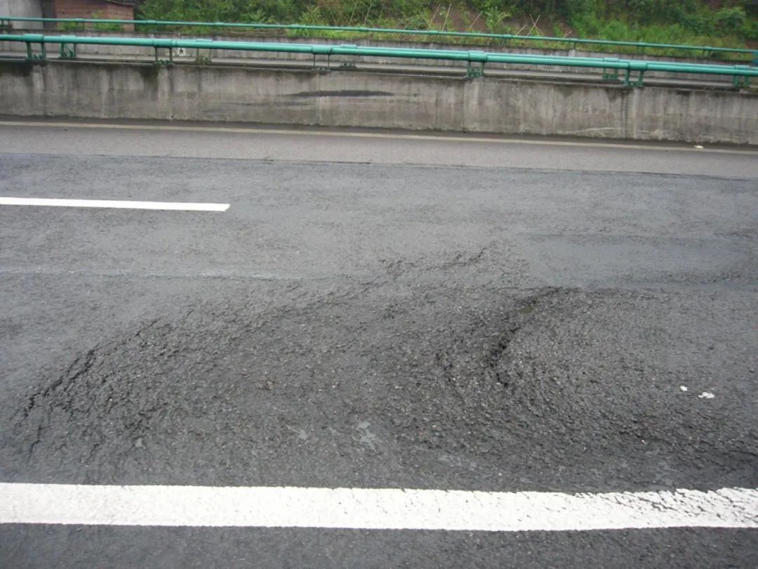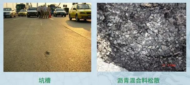 铺装病害主要表现形式:坑凼松散、车辙推拥、开裂