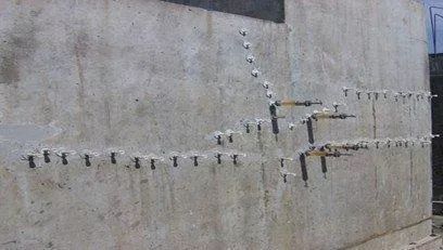 试压:用0.1-0.2MPa压力水作渗水试验,采取灌浆孔压水,排水孔排水的方法检查裂缝和管路畅通情况,然后关闭排气孔检查止浆堵漏效果,并湿润缝面,以利粘结。