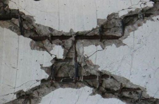 由于混凝土质量较差或保护层厚度不足,混凝土保护层受二氧化碳侵蚀炭化至钢筋表面,使钢筋周围混凝土碱度降低,或由于氯化物介入,钢筋周围氯离子含量较高,均可引起钢筋表面氧化膜破坏,钢筋中铁离子与侵入到混凝土中的氧气和水分发生锈蚀反应,其锈蚀物氢氧化铁体积比原来增长约2~4倍,从而对周围混凝土产生膨胀应力,导致保护层混凝土开裂、剥离,沿钢筋纵向产生裂缝,并有锈迹渗到混凝土表面。由于锈蚀,使得钢筋有效断面面积减小,钢筋与混凝土握裹力削弱,结构承载力下降,并将诱发其它形式的裂缝,加剧钢筋锈蚀,导致结构破坏。