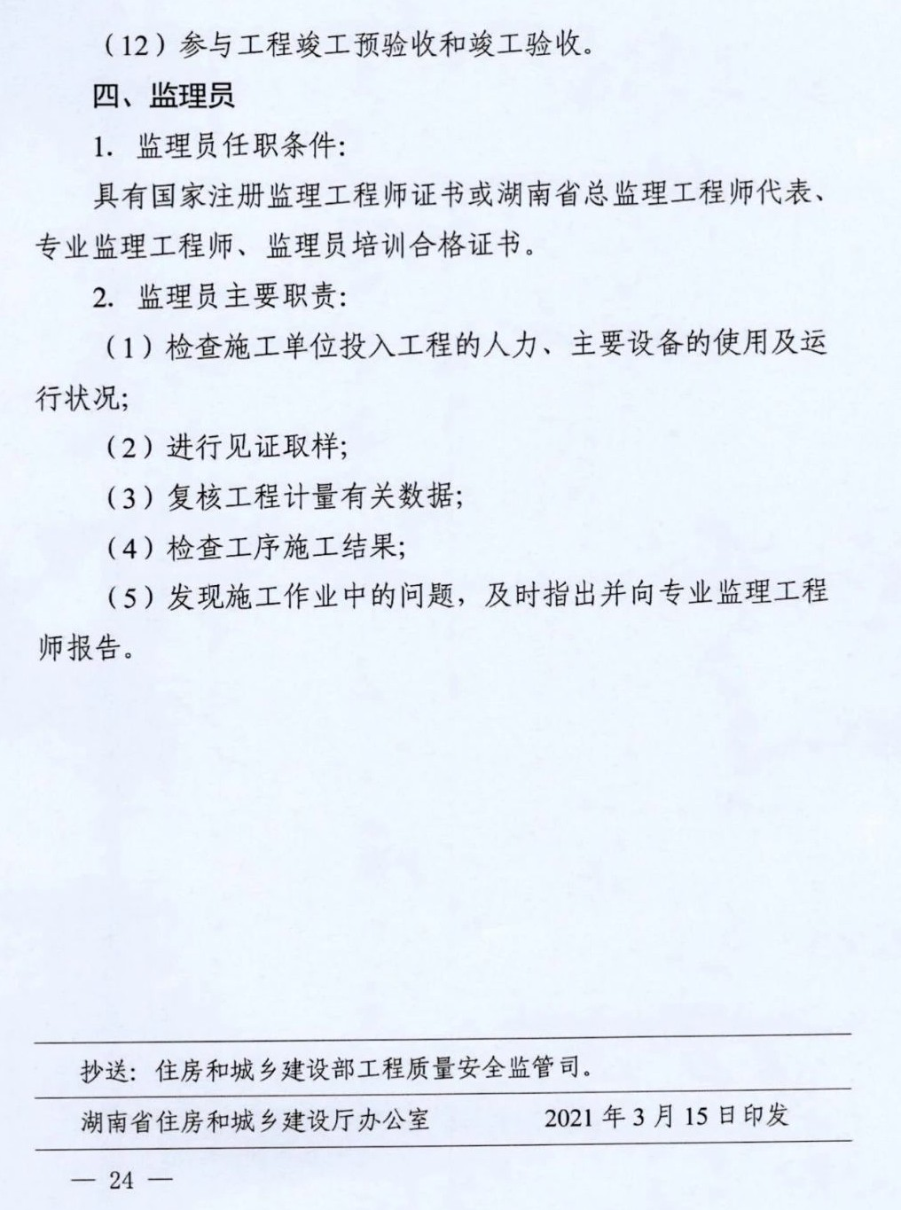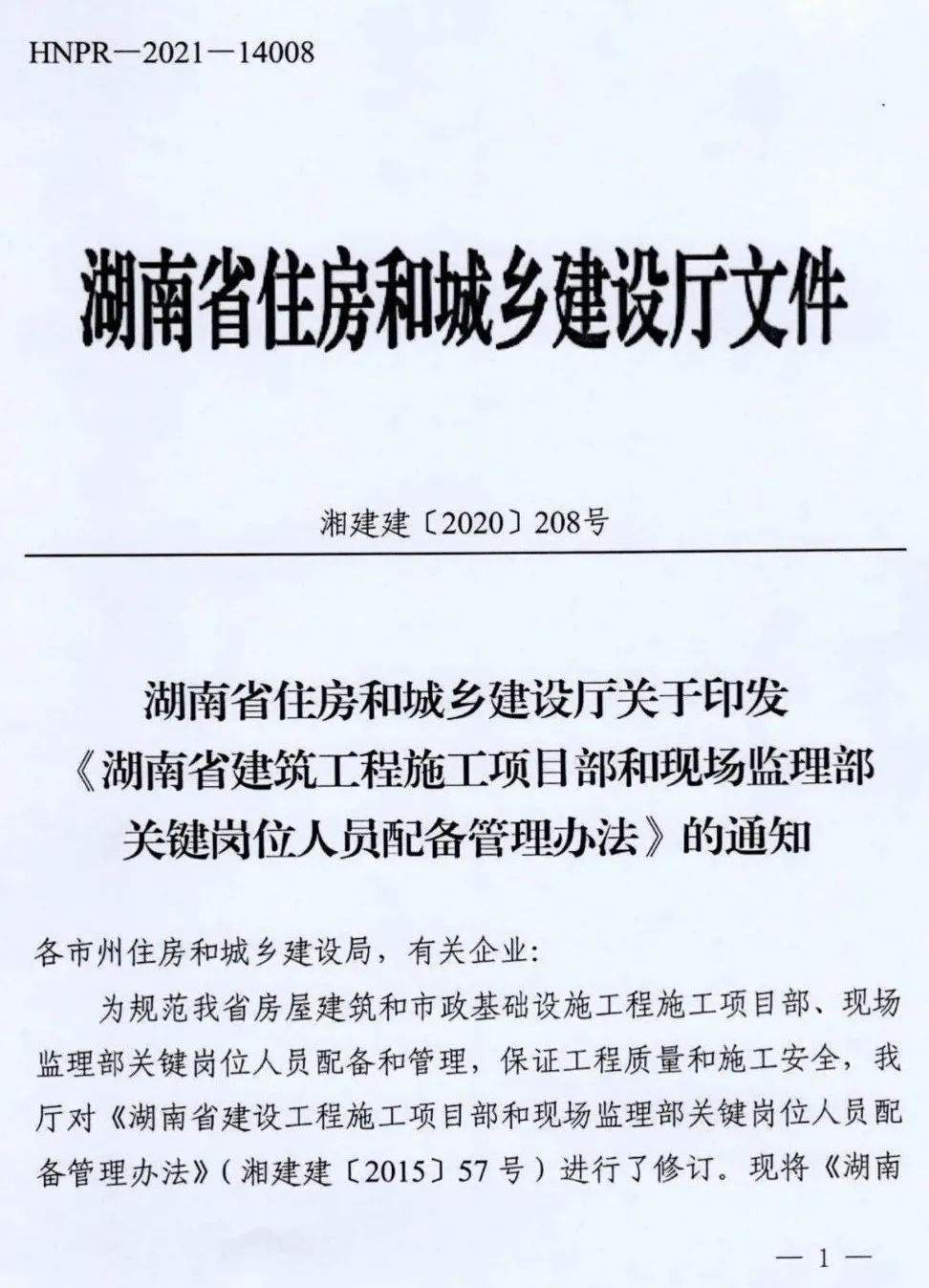近日,湖南省住建厅发布《湖南省建筑工程施工项目部和现场监理部关键岗位人员配备管理办法》,自2021年3月15日起实施。
