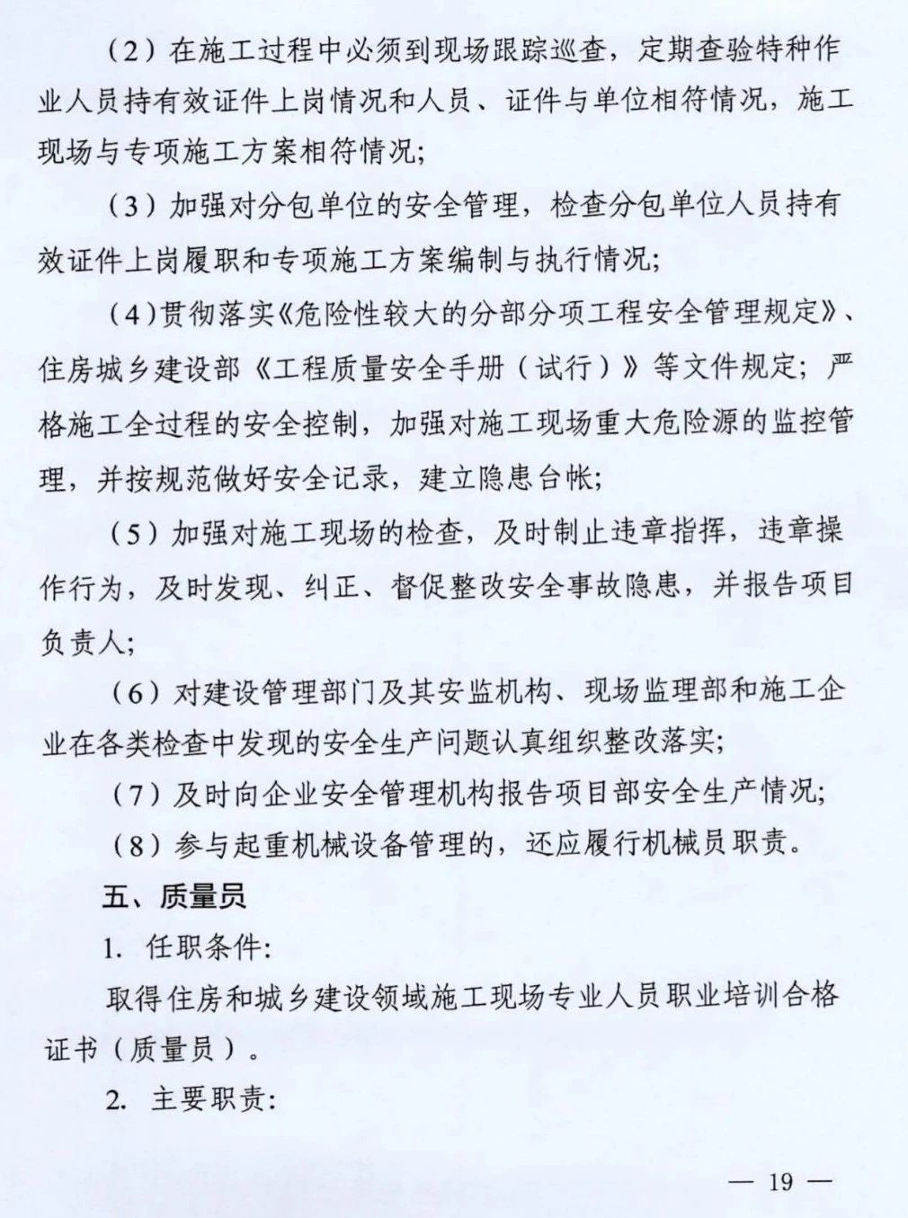 (5)因违法违规行为不能继续担任施工现场管理工作的;