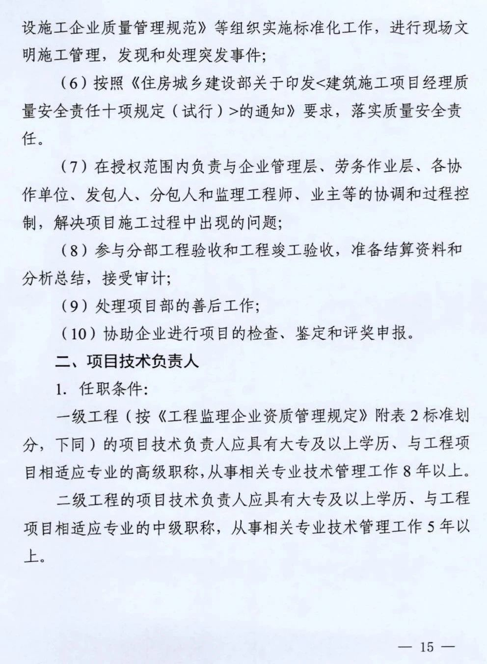 第八条 施工总承包和专业分包单位完成合同约定工程量,经监理、建设单位同意并报工程质量安全监督机构确认后,可以撤离施工项目部关键岗位人员。现场监理部关键岗位人员完成合同约定本职工作后,经建设单位同意并报工程质量安全监督机构确认,可以撤离现场监理部关键岗位人员在招投标环节录入证书信息的项目经理和总监理工程师,符合撤离条件的,经工程质量安全监督机构确认后,由招投标监管机构实施撤离。