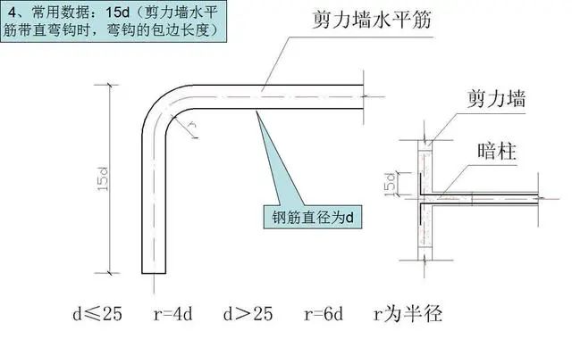 2)剪力墙竖向钢筋封顶带直弯钩时,弯钩外包长度。