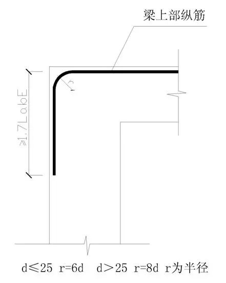 3)挑梁悬挑端主筋下弯钩外包长度。