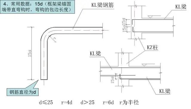 1)框架柱封顶带直弯钩时,弯钩外包长度。
