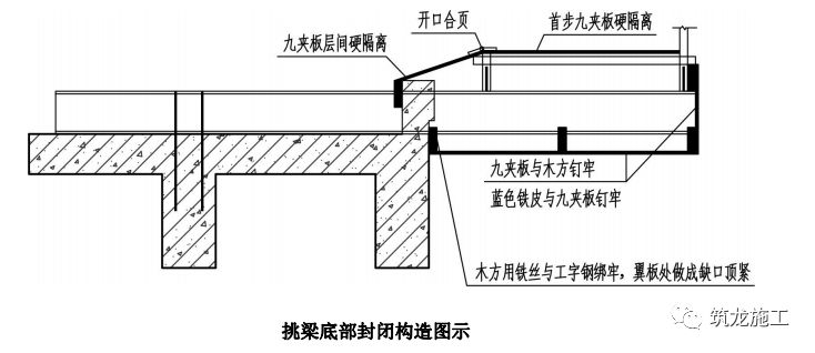 4. 设置软挑安全防护棚时,若遇台风天气,应收回并拆除安全网。设置硬挑安全防护棚,应因地制宜,综合考虑防护需要及防台风措施。软挑安全防护棚做法示意图硬挑安全防护棚做法示意。