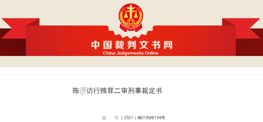 2021年3月,中国裁判文书网对此项目相关的案件进行了二审宣判。被告人陈某访被判处有期徒刑三年二个月,并处罚金人民币二十三万元。
