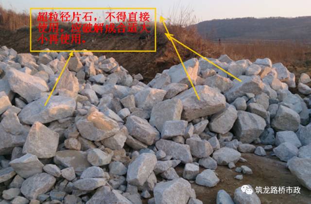 1.2 片石:厚度不小于150mm,不得采用裂纹、风化石、山皮石。片石要有平整面,棱角分明。不得采用无棱角,尺寸超小,薄片状,浑圆状石料。用作镶面的片石,表面要大致平整,边角方正,厚度不小于15cm,达不到要求的要进行加工修饰。