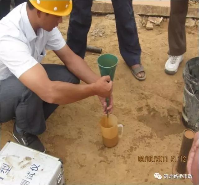 泥浆稠度:计测量时用手指堵住漏斗下面的出口,用量杯分别将500ml和200ml 泥浆通过滤网倒入漏斗,然后打开出口,让泥浆从漏斗管中流出,用秒表测定流出500ml泥浆所需时间(s),即为泥浆稠度。