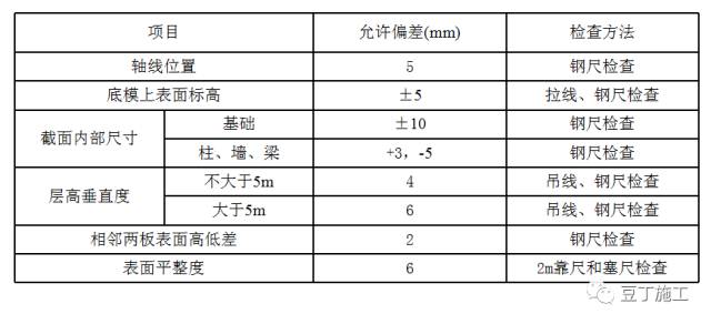 7)模板安装允许偏差