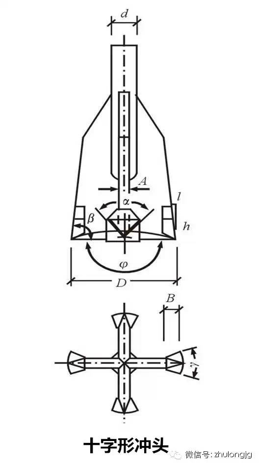 冲击钻成孔。冲击钻机通过机架、卷扬机把带刃的重钻头(冲击锤)提高到一定高度,靠自由下落的冲击力切削破碎岩层或冲击土层成孔。冲击钻头形式有十字形、工字形、人字形等,一般常用十字形冲击钻头。冲孔前应埋设钢护筒,并准备好护壁材料。