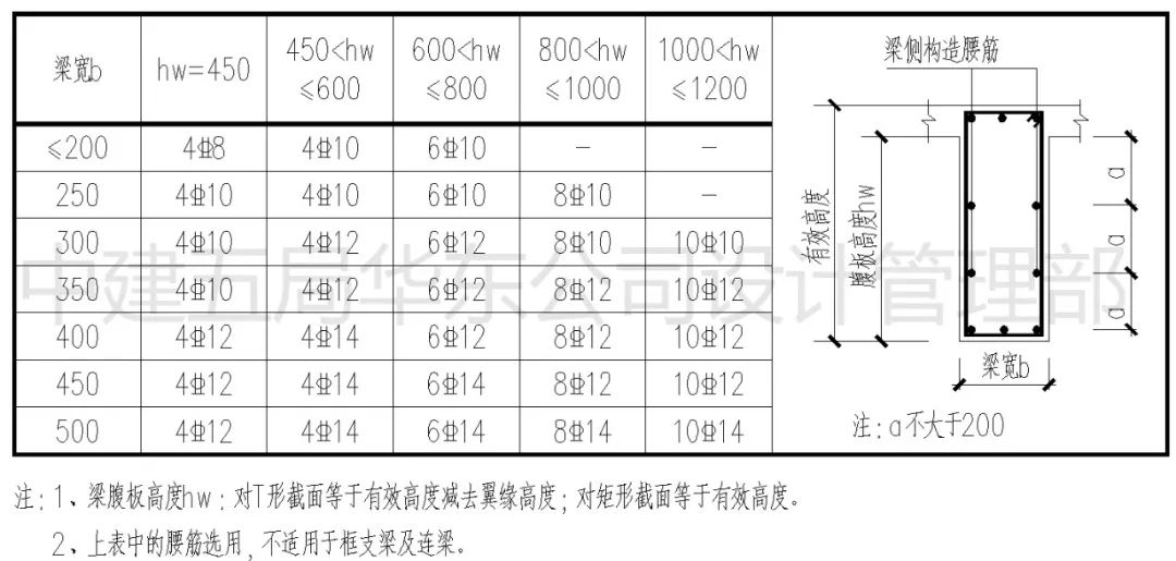 (3)如当地没有特殊要求,梁的构造腰筋可按下表配置: