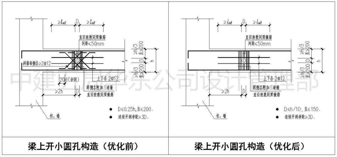 《手册》明确:当孔洞直径d0小于h/10及150mm时,孔洞周边可不设倾斜补强钢筋。梁上开小洞的加强构造可按下图进行优化: