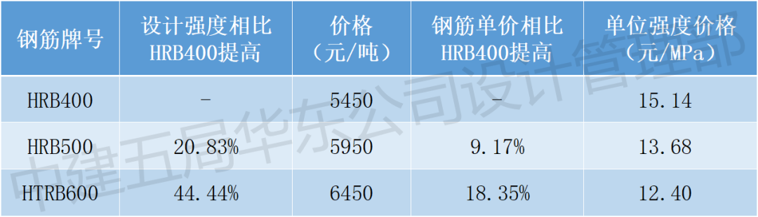 由上表可知:对比强度和价格的涨幅后,HTRB600的经济性更显著。