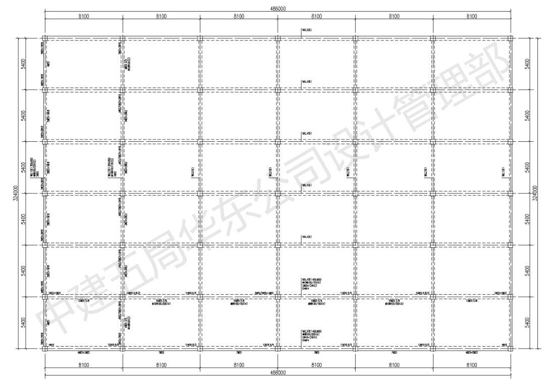 我们模拟设计了一个典型的单建地下室工程,并对其作材料和造价的对比测算(不考虑地下室底板和基础)。该地下室柱网为8.1米*5.4米,共6*6跨,总面积约1575平米,层高3.7米,顶板覆土1.5米,大板结构(只设主梁,不设次梁),顶板厚250毫米,柱截面为500毫米*500毫米,梁截面根据实际配筋率调整。地下室结构均采用C35标号混凝土,梁、柱箍筋均为三级钢,梁、板、柱的主筋分别用HRB400、HRB500和HTRB600进行设计,对这三种设计方案分别测算其混凝土、钢筋用量和整体造价。