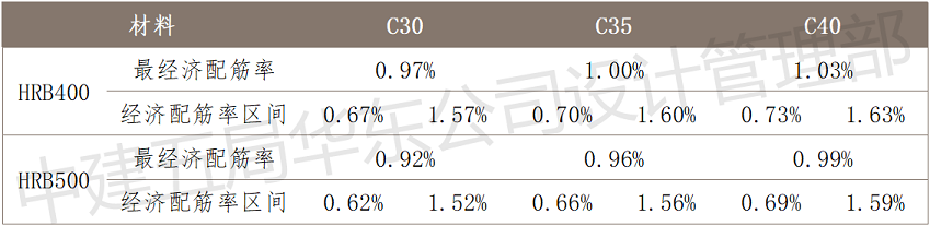 设计人员需根据市场上的材料价格、混凝土强度及钢筋的强度选择适当的经济配筋率。