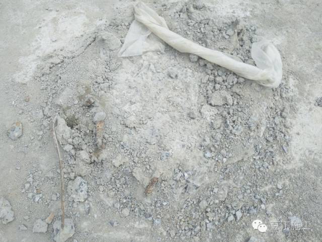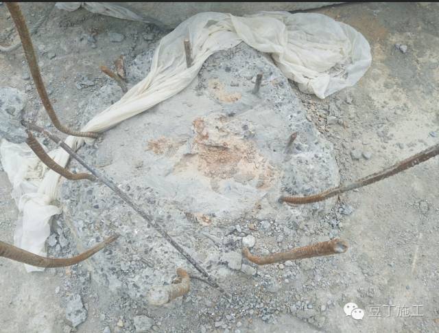 下面这三根桩,桩头虽然破了,但是处理的极其不严谨,桩面夹泥,浮浆,不密实的混凝土太厚,碎石子太多,不平整。这样是绝对不能检测的,必须让工人处理合格。