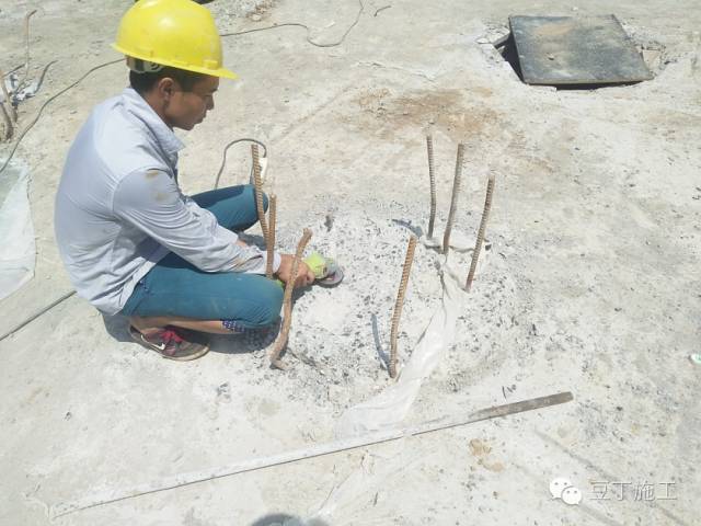 工人师傅处理桩头打磨的现场见证
