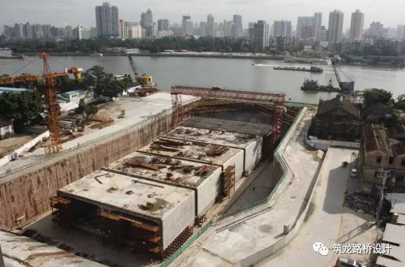 隧道很长,当然不能做一个整的出来,我们一般都是一节一节预制好,然后再对接,先在靠近海边的陆地上挖个大坑,在里面把节段预制好。如下图: