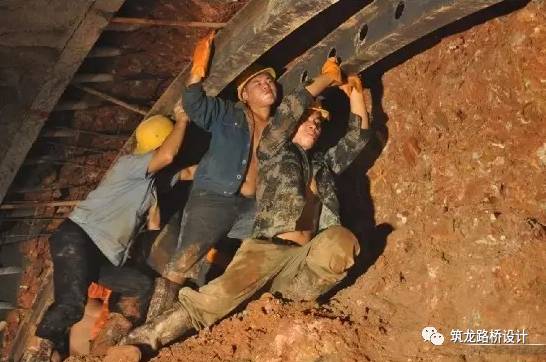 一般而言,岩石隧道挖了之后不会马上垮,而土质隧道由于预先注浆或者打了锚杆(也就是粗点的钢筋)也不会马上垮,这个时候,工人就会按照测量的指示,把一些预先做成隧道轮廓样子的钢拱架安放到指定位置,如下图: