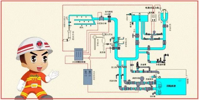 上面我们讲了灭火系统的分类,接下来我们来学习灭火系统的组成,灭火系统组成分为五种,分别为: