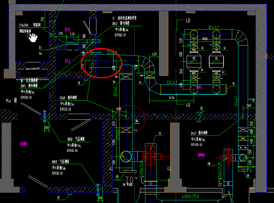 施工内容包括:①防爆地漏;②管道穿密闭墙。