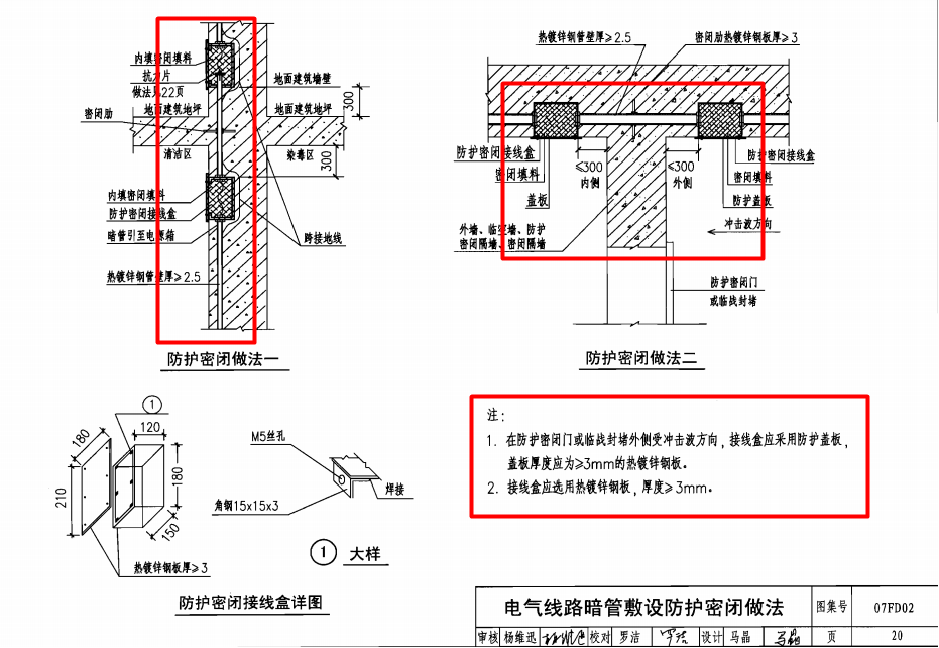 注:出入口、连通口防护密闭门、密闭门门框墙上均应预埋4-6根备用管,管径50-80mm,管壁厚度不小于2.5mm,管材采用热镀锌钢管,并作防护密闭处理。