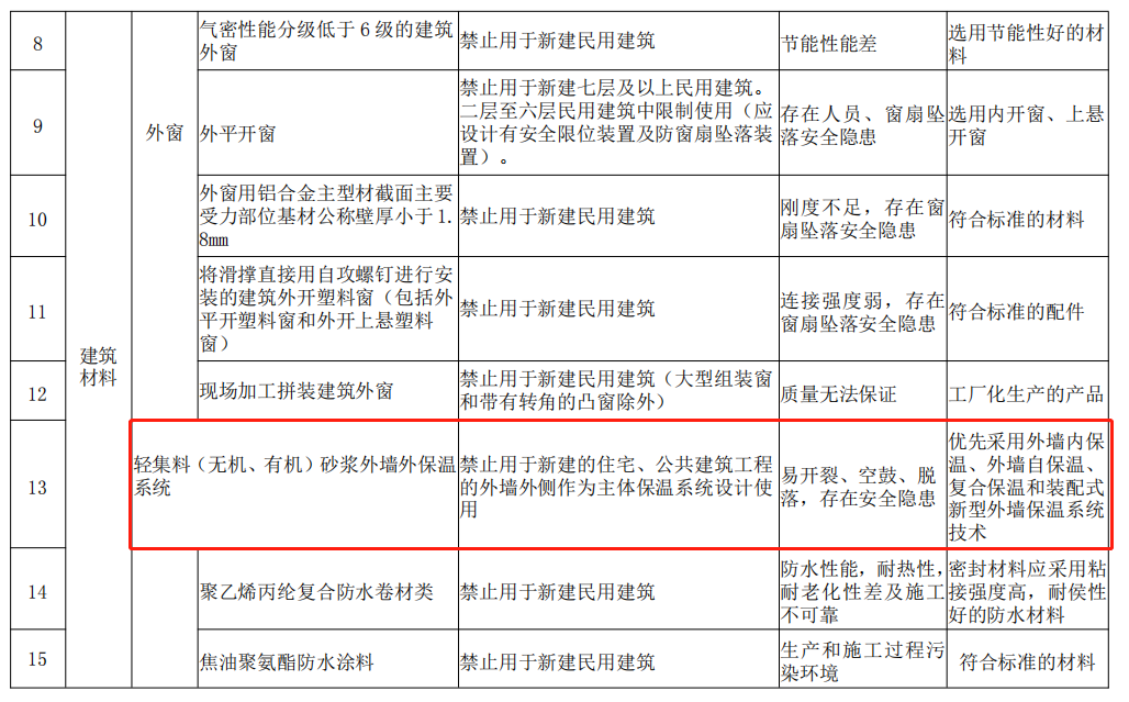 限制使用的外墙保温技术和产品