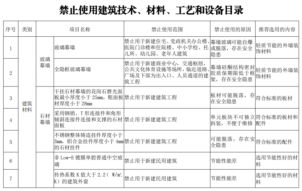 5月31日,宜昌市住建局发布关于征求《宜昌市建设工程推广、限制和禁止使用建筑技术、材料、工艺和设备目录(第二批)》修改意见的通知,在第二批禁限目录中显示