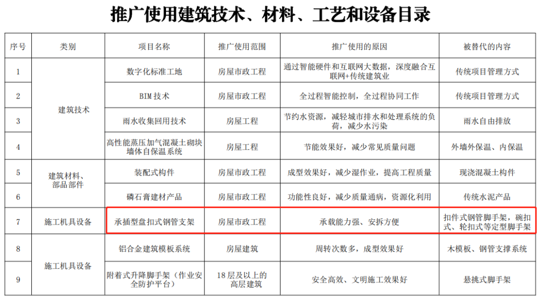 广州市住建局《关于征求推广使用承插型盘扣式钢管支架的通知(试行)意见的函 》(穗建质〔2021〕129号)提出: