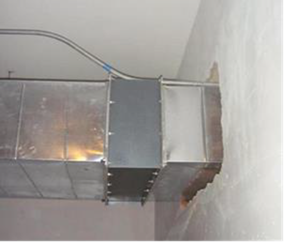 1、通风管道安装系统中主、干管长度超过20m,没有设置防止摆动的固定点;干管长度超过20m,没有设置防晃支架。支吊架不宜设置在风口、阀门、检查口及自控机构处,离风口或插接管的距离不小于200mm。对通丝外露长度做统一要求,对于长短不一的要进行切割处理。1、风管在穿越需要封闭的防火、防爆的墙体或楼板时,预埋管、防护套管钢板厚度不小于1.6mm,风管与防护套管之间采用不燃的柔性材料进行封堵;2、防火阀设置独立吊架,并保证防火阀距墙表面的距离不大于200mm。1、重要设备保温时,由于形状不规则,要事先形成一个保温方案,根据保温方案对实物进行精确测量,准确下料(严禁出现多下料或少下料情况),胶水涂抹均匀(严禁为求速度有漏刷胶或刷少胶现象);2、法兰、变径等突出部位必须单独下料保温,表面应平整, 当采用卷材或板材时,允许偏差为5mm;采用涂抹或其它方式时,允许偏差为10mm;防潮层(包括绝热层的端部)应完整,且封闭良好;其搭接缝应顺水。根据规范规定及施工工艺标准要求,矩形风管与设备保温钉应分布均匀,其数量底面每平方米不少于16个,侧面不少于10个,顶面不少于8个,首层保温钉至风管或保温材料边缘的距离不大于120mm。风机吊装时,吊架及减振装置应符合设计及产品技术文件要求,安装隔振器的地面应平整,各组隔振器承受荷载的压缩量均匀,高度误差应小于2mm。减振器要根据设备的重量, 选择相匹配的减振器。吊杆与托架连接处采用双螺母紧固,保温风管与托架之间应设绝热衬垫,防止产生冷桥,绝热衬垫厚度不小于保温厚;采用木质材料衬垫时,要进行防腐处理。