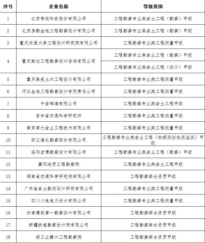 核准工程勘察资质的单位名单