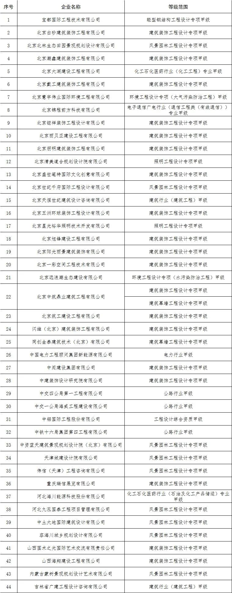 2.核准工程设计资质的单位名单
