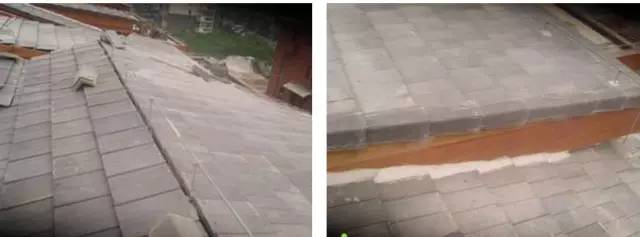 排风道、屋面检查孔等处屋面平瓦与立面结构相交部位,除使用与屋面配套的柔性卷材泛水处理外,必须全部使用防水砂浆将瓦与结构(木条)之间的缝隙填满灌实。