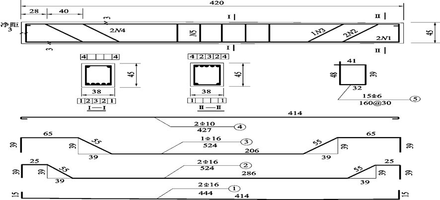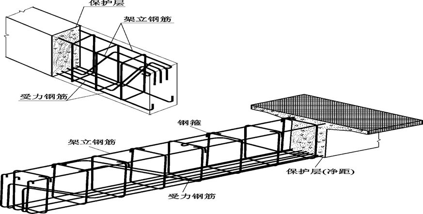 图11-16 钢筋混凝土梁配筋示意图