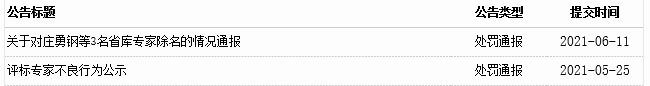 6月11日,浙江省综合性评标专家库发布《关于对庄勇钢等3名省库专家除名的情况通报》。