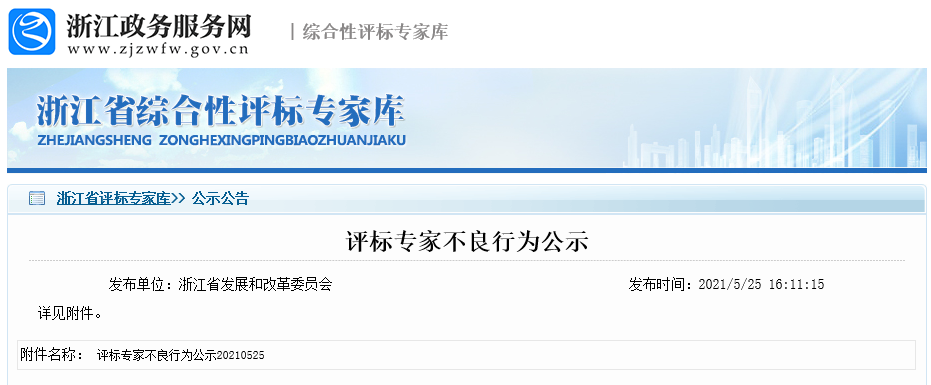 2020年5月28日,浙江省发改委发布《浙江省综合性评标专家库管理办法实施细则(修订征求意见稿)》。