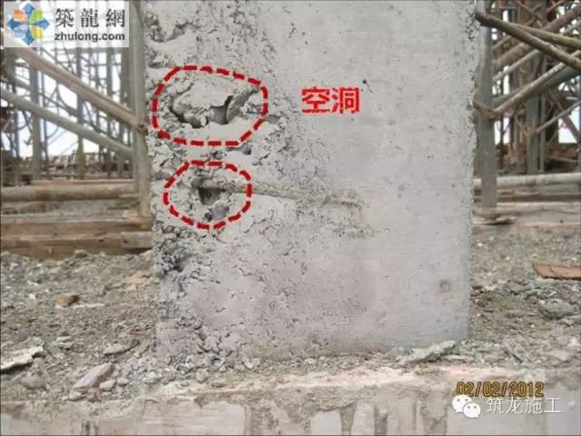 由于混凝土灌注时有一些部位堵塞不通,构件中就会产生空洞,空洞不同与蜂窝,蜂窝的特征是存在于未捣实的混凝土或缺水泥浆;而空洞却是局部或全部没有混凝土。空洞的尺度通常较大,以至于钢筋全部裸露,造成构件内贯通的断缺以至于结构发生整体性破坏。