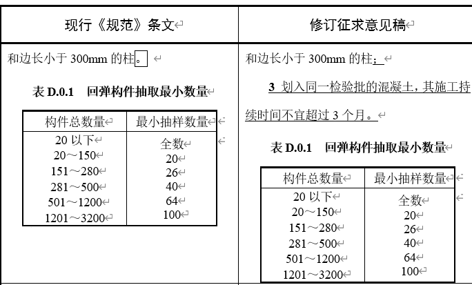 同时还有些细节需要注意,如回弹取芯划分检验批时,本次修订明确规定当检测构件划分为同一检验批时,施工间隔时间不允许超过3个月。实体同条件养护不再使用600°天说法。