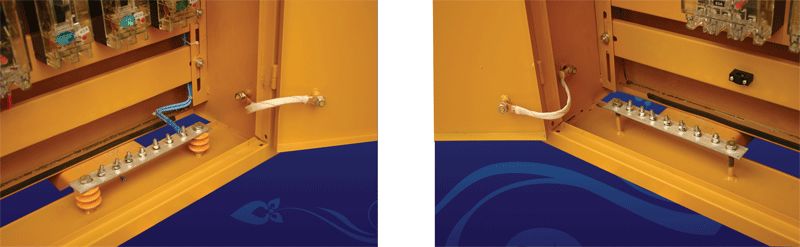 根据所控制设备额定容量选择控制开关及漏电断路器。控制开关为DZ20(SE或KDM1)系列透明塑壳断路器,漏电断路器为DZ15L系列透明系列漏电断路器;PE线接线螺栓为3个。