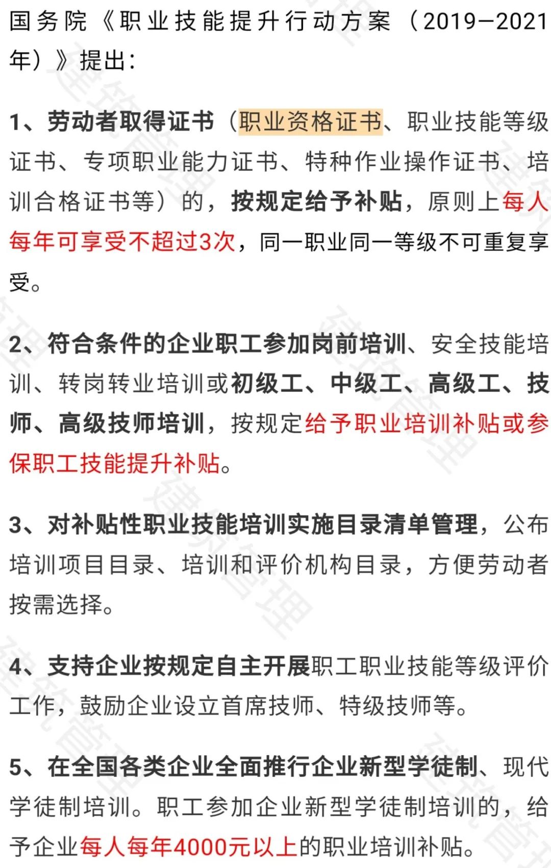 (十二)支持地方调整完善职业培训补贴政策。符合条件的劳动者在户籍地、常住地、求职就业地参加培训后取得证书(职业资格证书、职业技能等级证书、专项职业能力证书、特种作业操作证书、培训合格证书等)的,按规定给予职业培训补贴,原则上每人每年可享受不超过3次,但同一职业同一等级不可重复享受。