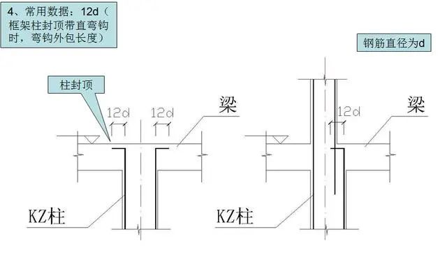 1)框架柱封顶带直弯钩时,弯钩外包长度。