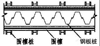 2)有锚板桩的双层围檩插桩法