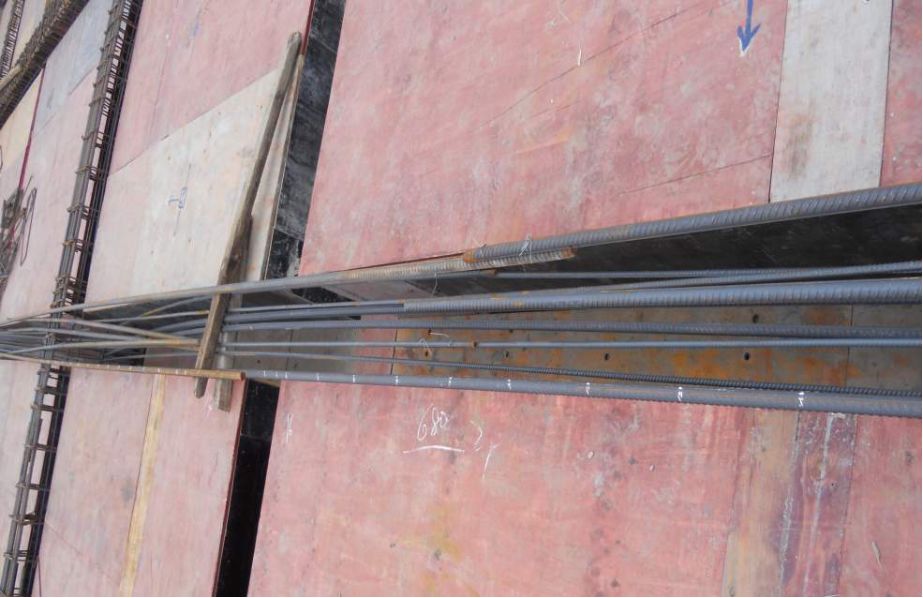 4、为保证门窗洞口标高位置正确,在洞口竖筋上划出标高线。门窗洞口要按设计要求绑扎连梁钢筋,锚入墙内长度要符合设计要求。另外,配合其他工种安装预埋管件、预留洞口等,其位置、标高均应符合设计要求。
